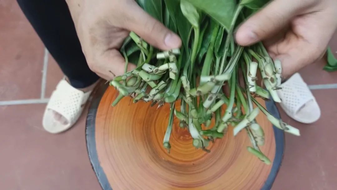 将处理好的黄金葛茎放通风透光处,稍微晾干伤口,几分钟后就可以准备扦插了。