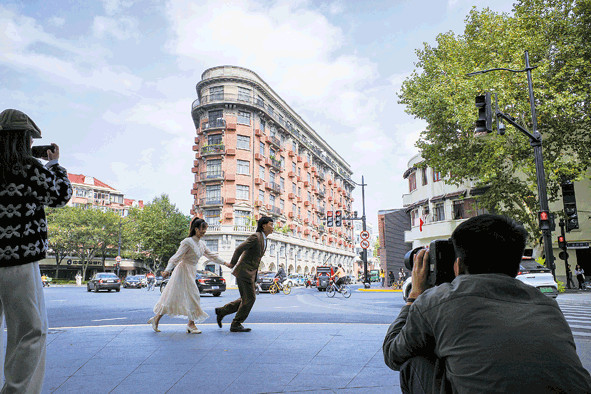 经过这番整治,武康大楼很快“网红”了起来。这时,新问题又来了:不少游客站到了马路边上甚至滚滚车流中来“打卡”。堵,肯定不行,那么就再想办法。为了保护游客安全和方便拍摄,城市管理部门将人行步道空间向外拓展了3.6米,为整个武康大楼的“最佳打卡点”增加了500多平方米的人行流动空间。接着,武康大楼一楼与周边的业态也得到了改造,成为一个有颜值、能小憩、观赏与服务兼备的休闲空间。