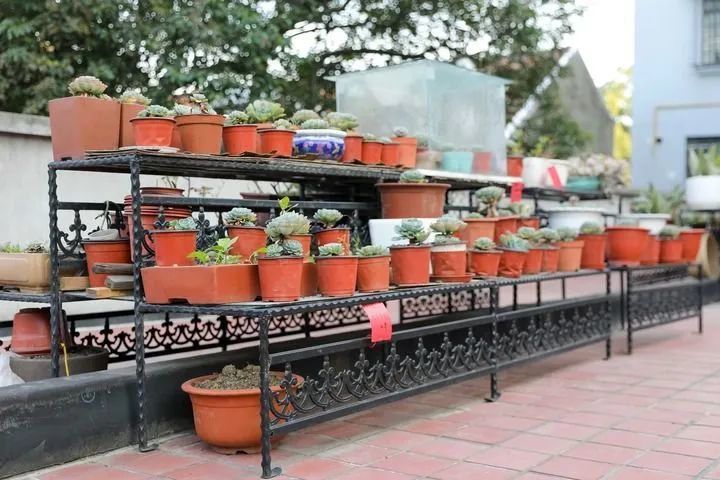 2021年11月25日拍摄的居民在武康大楼“空中花园”种植的花卉盆栽。新华社记者王翔摄