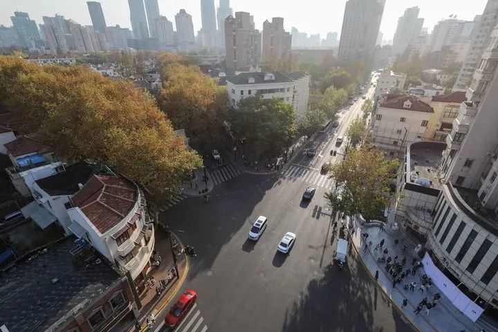 2021年11月25日从武康大楼俯瞰周边网红打卡点。新华社记者王翔摄