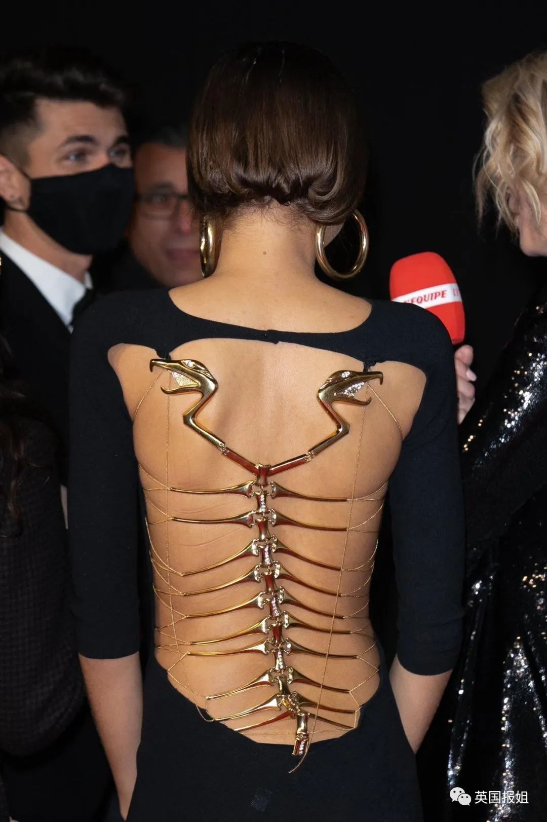 尤其是最近她参加巴黎活动时穿的红毯战袍——那一袭黑色露背金属脊椎长裙,