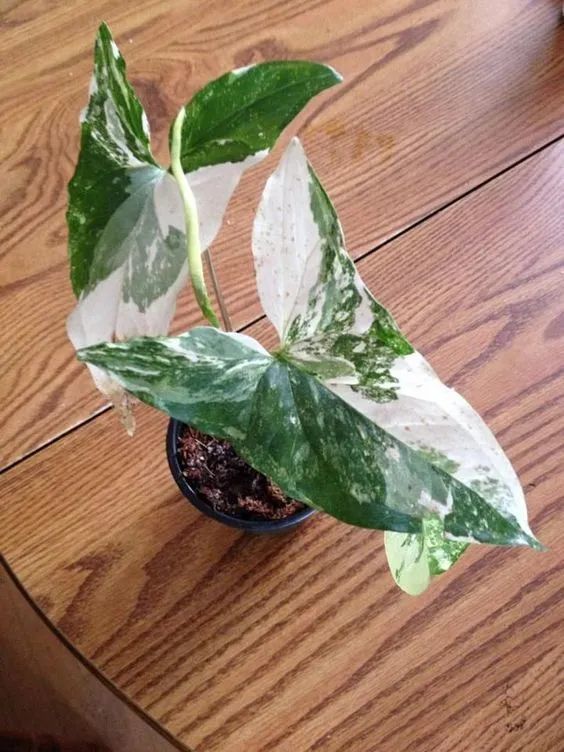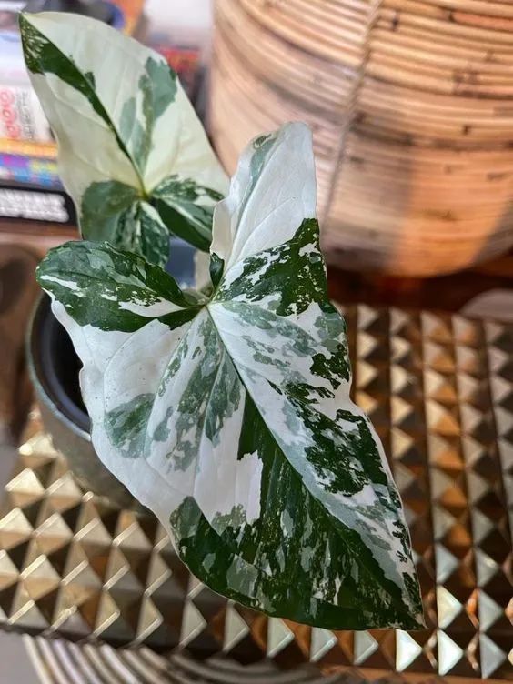 白锦(花叶)合果芋就是锦化的合果芋品种,叶子上带有迷人的白色斑纹,它的价格会比普通的合果芋要贵上很多。