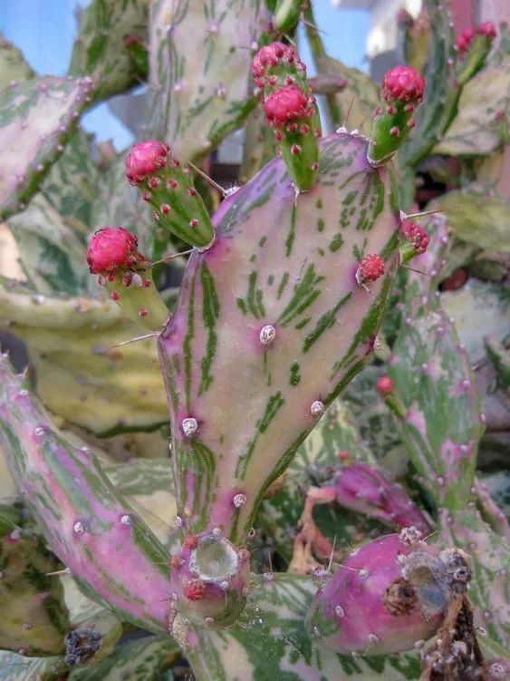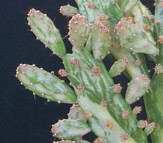 白团扇就是叶子上有很多白锦的团扇仙人掌品种,它是极其好养的一种观赏植物,叶子上有迷人的白色锦斑,比较适合懒人养护。