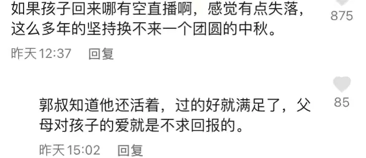 在孙海洋与孙卓即将认亲的评论区里,有人留言:“不要像失孤原型那样就行”,也有人希望能严惩人贩,无论被拐走的孩子这些年过的时好时坏,买卖同罪都必须在生恩大于养恩之前。
