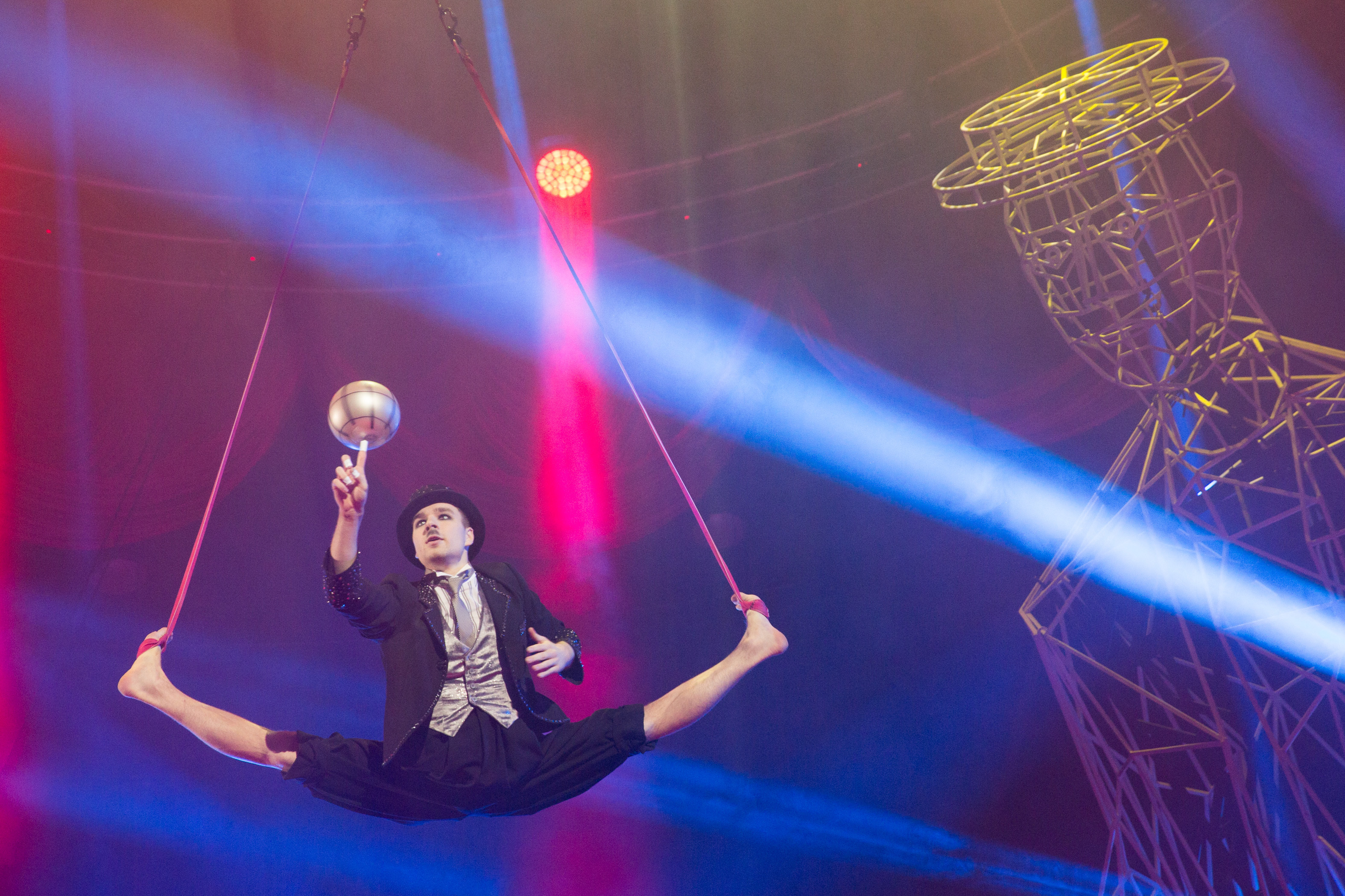 12月3日,演员在俄罗斯圣彼得堡国立大马戏院进行马戏表演。新华社发(莫京娜 摄)
