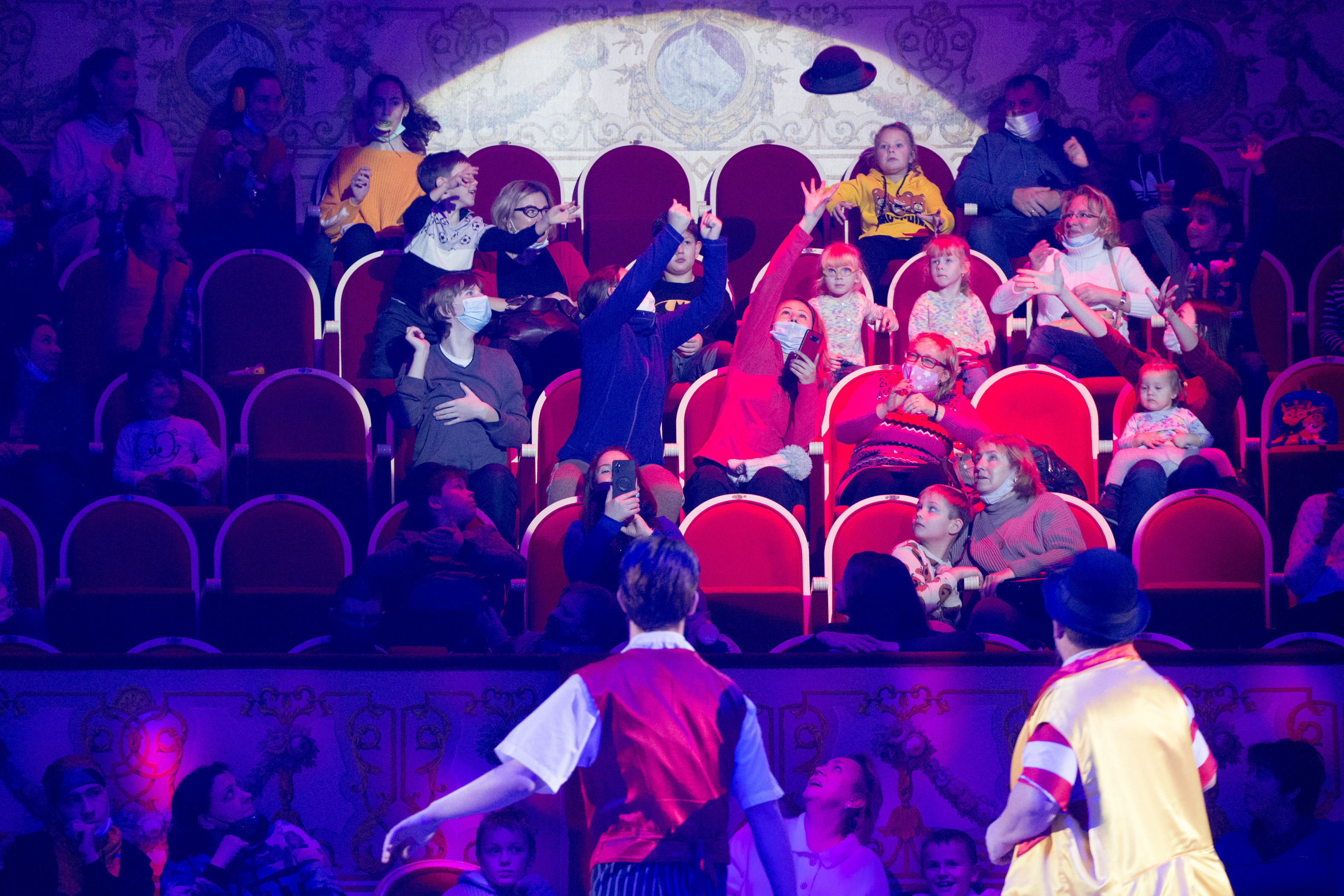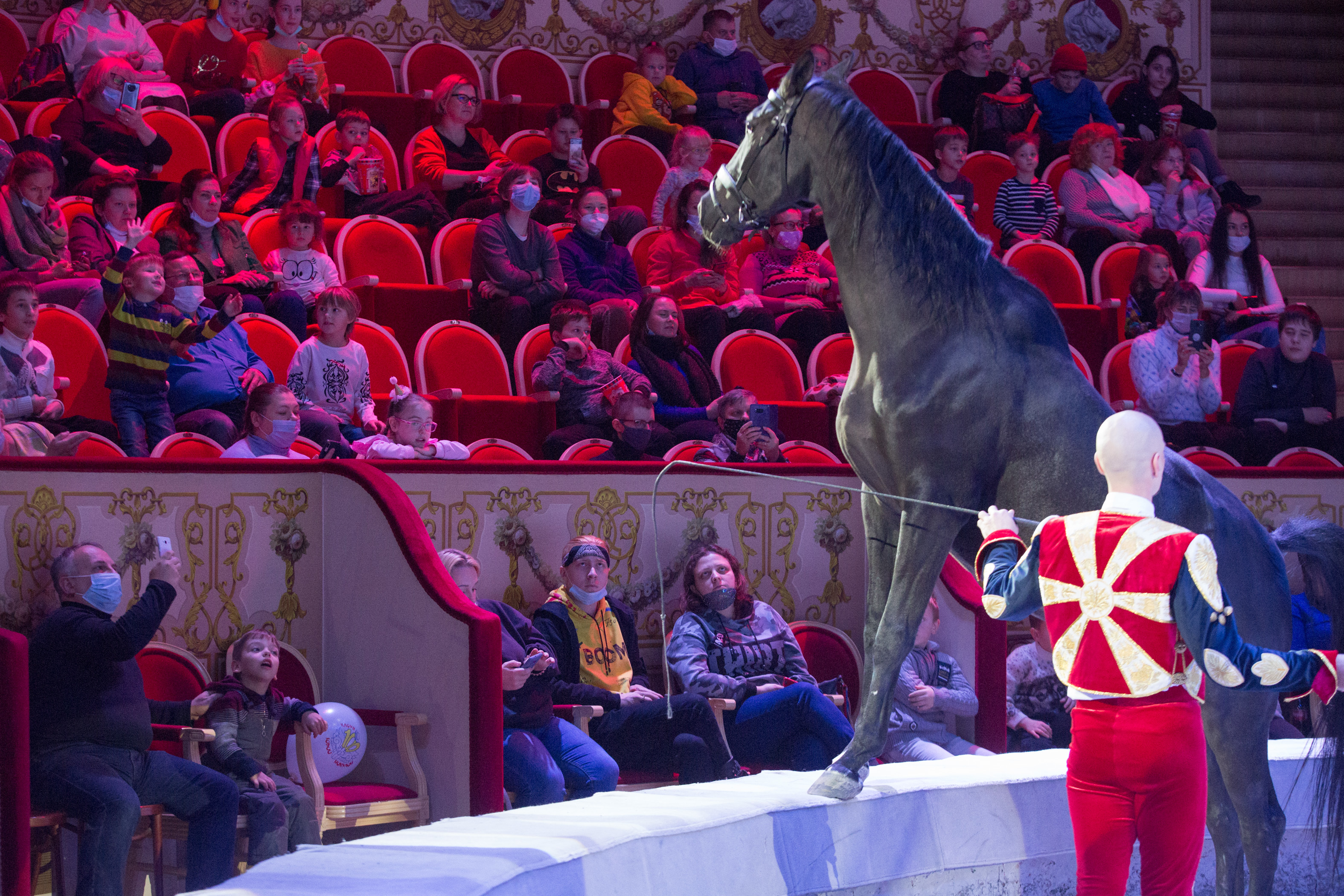 12月3日,观众在俄罗斯圣彼得堡国立大马戏院观看马戏表演。新华社发(莫京娜 摄)