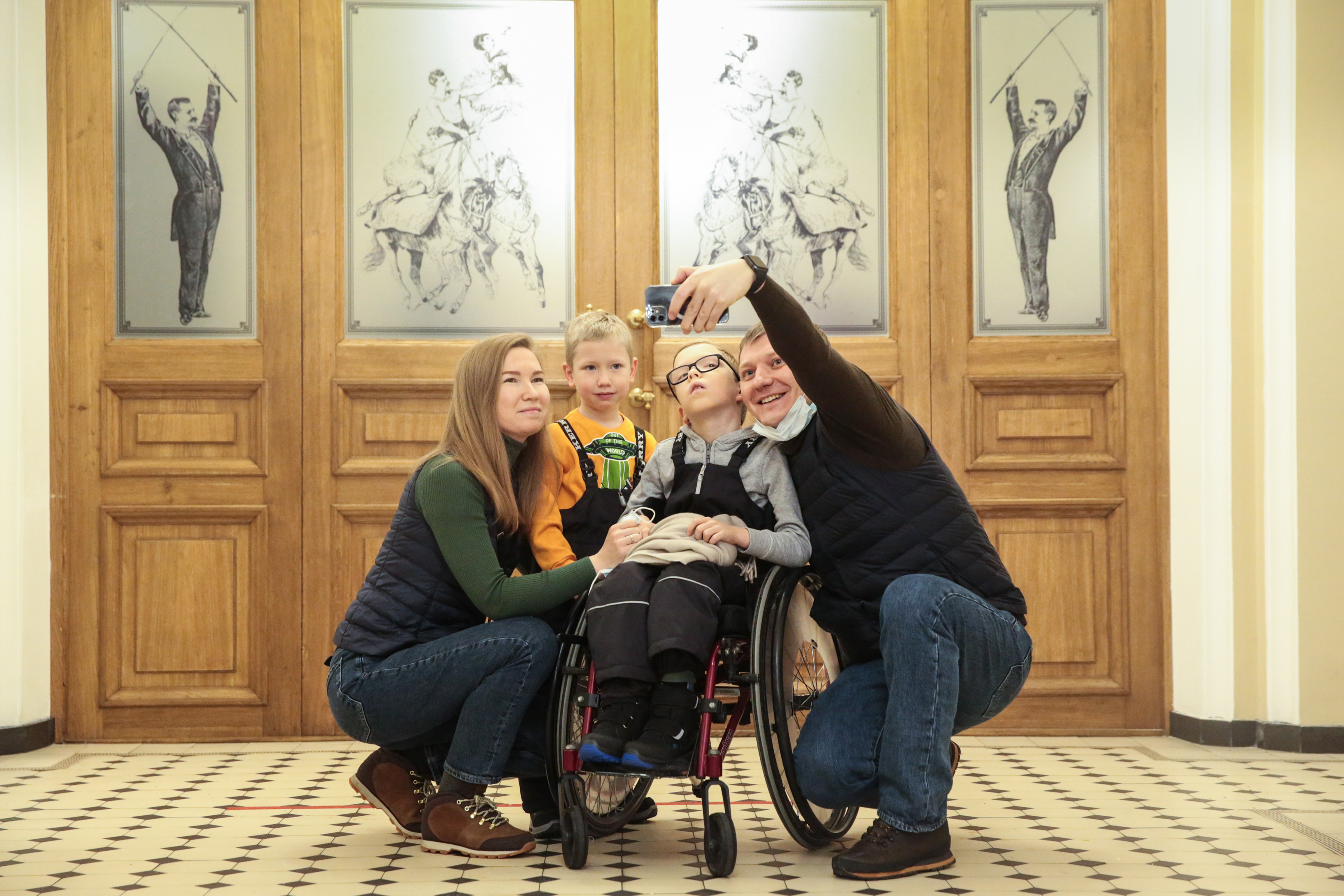 12月3日,小朋友和家长在俄罗斯圣彼得堡国立大马戏院合影。新华社发(莫京娜 摄)