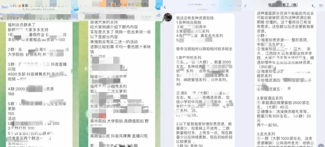 更可怕的是,这些群往往还关联着多种偷拍和色情复仇付费群,种类细到令人发指。