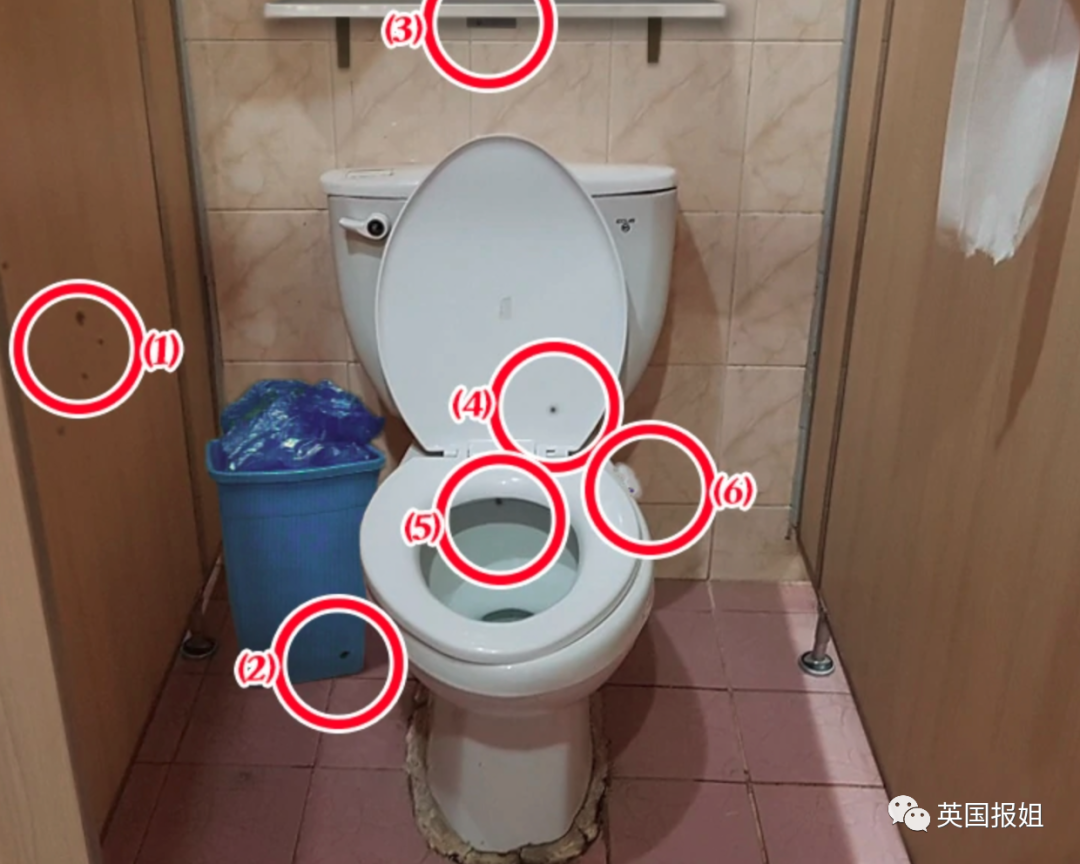 在马桶盖下面,上面,侧面,卫生纸筒,行李架,垃圾桶,甚至门板和螺丝钉都可能藏有摄像头。
