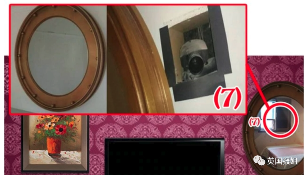 镜子看似安全,但其实是可以从背面看到人的双面镜,在背后贴上了摄像头。
