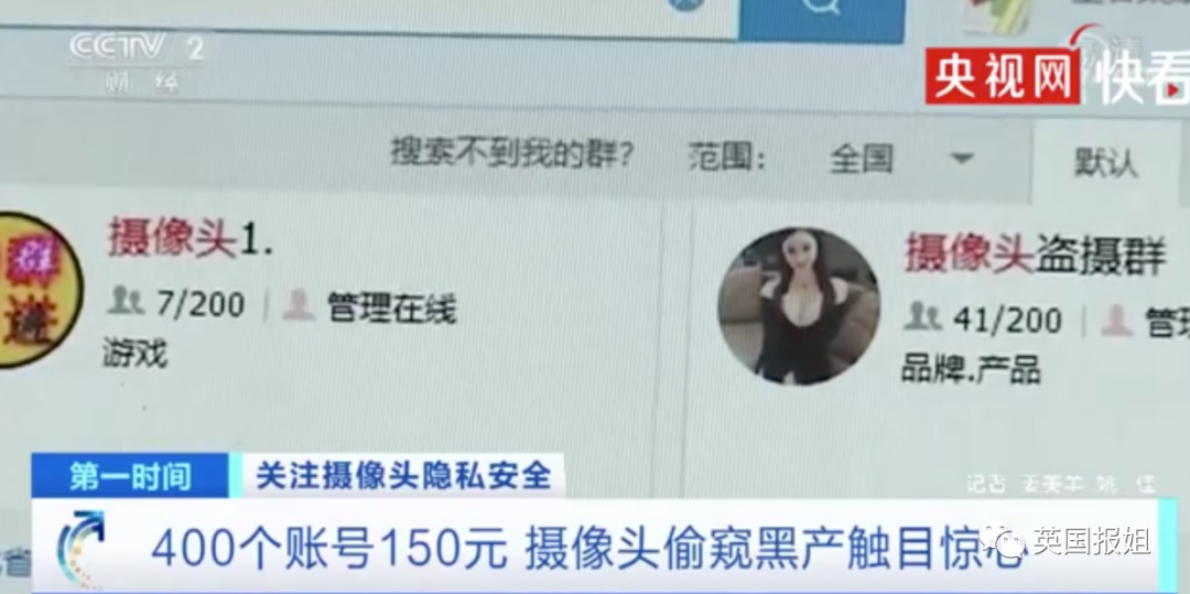 原来社交平台上除了有大量偷拍群,还有一大部分非法拍摄群专门黑进各家各户的摄像头,甚至还有150元出售400个摄像头信息的不法交易。