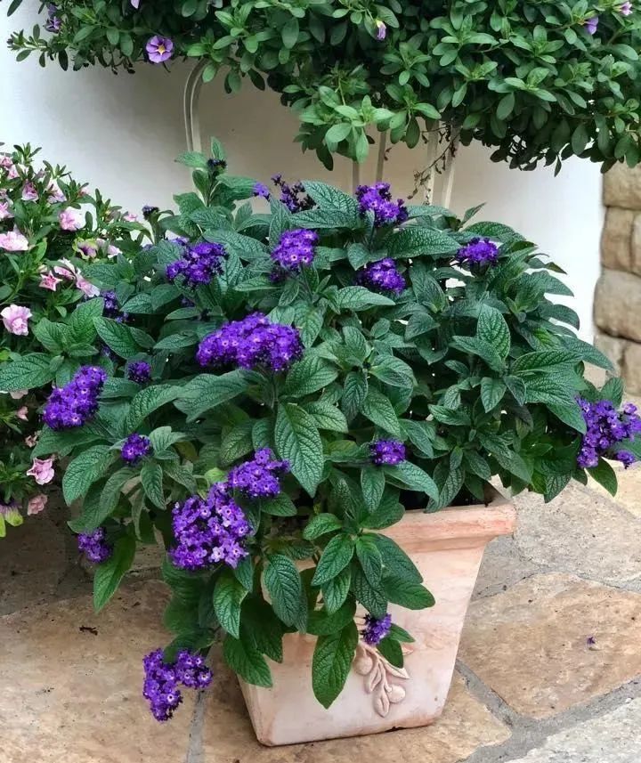 天芥菜的开出来的花朵闻起来特别清香,它的花看起来很有异国的情调,花色通常是紫色,而花蕊处则是黄色的。