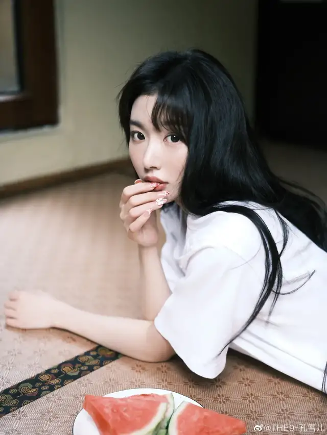 孔雪儿就完美了展示了这个发型的优势之处,慵懒随意的同时,保有空气刘海的轻盈感,以及厚刘海的蓬松感。
