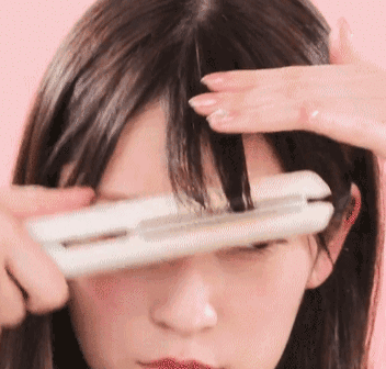 step2:抓取中间的刘海,用造型器一小束一小束地进行卷发,可以分层次卷刘海,这样刘海的立体感会更好。