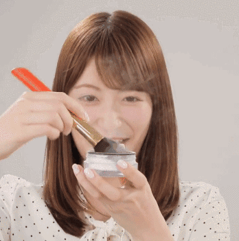 step3:出门时间不够时,可以用刷子将蜜粉大量扫在与刘海接触的额头上,有效吸收油脂,保持刘海的清爽。