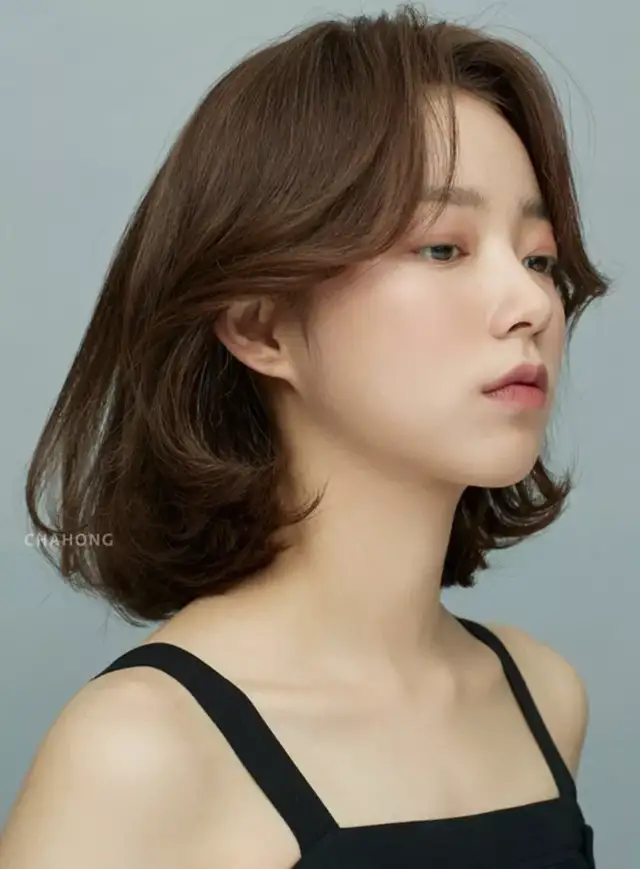圆脸的姐妹最适合的偏分S卷刘海了,让头发自然下垂,既可以遮掉部分脸颊,显得脸小一些,又可以修长脸型。