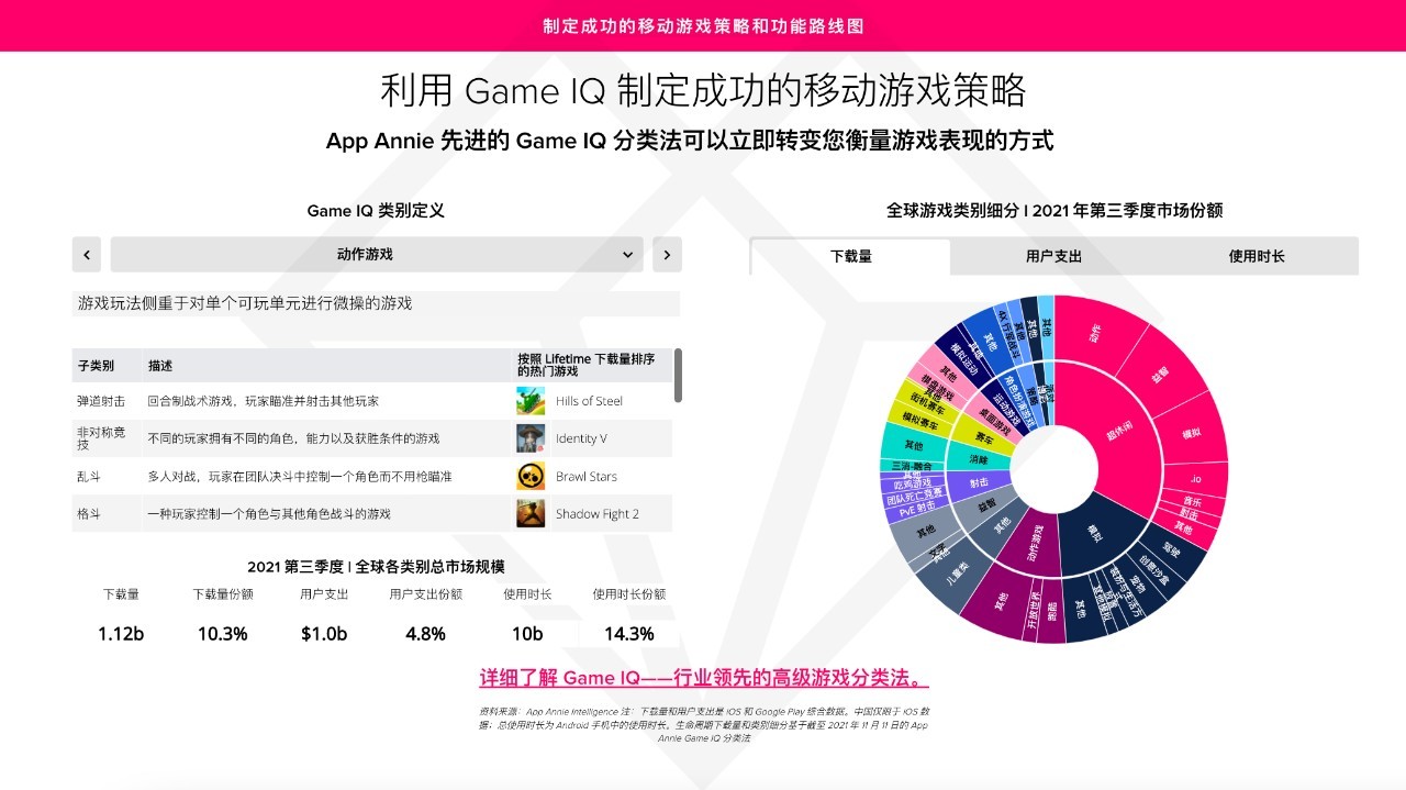 但App Annie对数据的挖掘并没有止步于此。例如,产品经理可以使用App Annie的比较游戏报告来了解特定游戏艺术风格、游戏玩法循环和变现模型的当前表现。