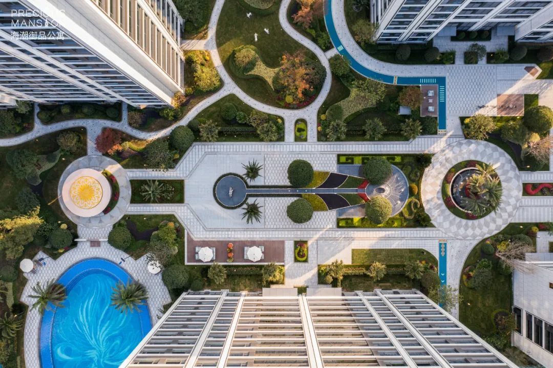 它与以往不同,通过浅水区和深水区的设置,让整个景观水系视觉上更开阔,如果你站在高处,你还会发现底部暗藏玄机,一只栩栩如生的“凤凰”仿佛即将涅槃而出。