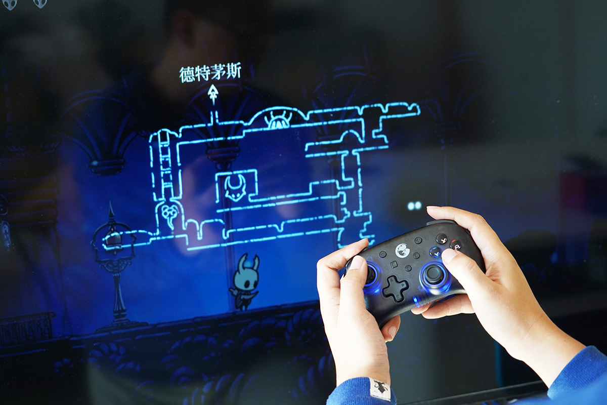 如空洞骑士、死亡细胞这类动作游戏,使用这款手柄玩得还是非常不错的;按住T键+十字键上下可以调整马达振动的强弱,像死亡细胞下落时的振动 ,调大一些感觉就会好很多;调出连发键后,射击游戏玩起来会轻松很多;不过遗憾的是GAMESIR T4mini没有设置学习组合键的模式,不然很多游戏复杂的操作就能简化打出来了。