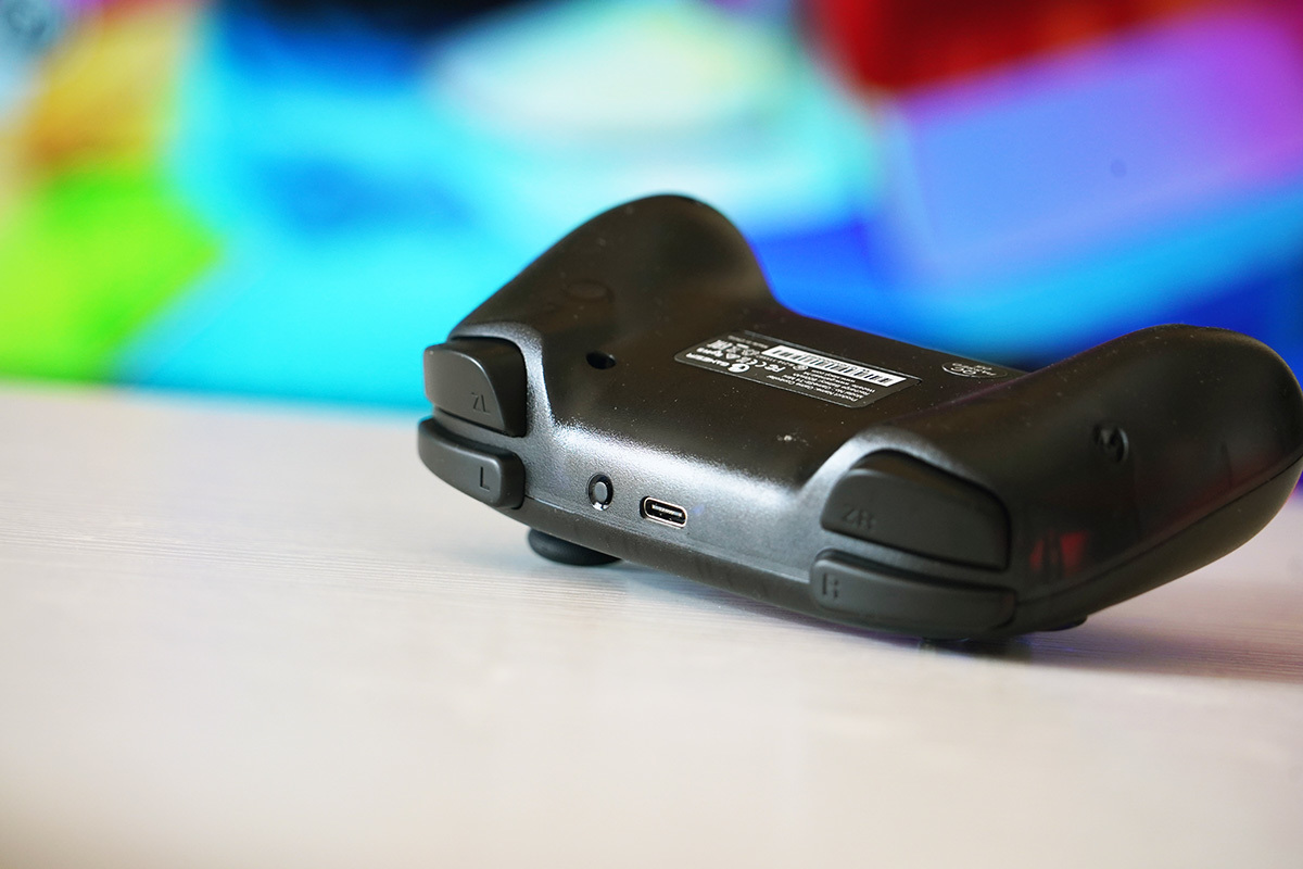 顶部的设计包含有LR、ZLR扳机键,Type-C接口即可以为GAMESIR T4mini进行充电,也可以让其转化为有线游戏手柄,旁边的配对键在首次连接switch时可以快速的完成配对操作。像连接Android、iOS则直接使用对应按键配对即可。