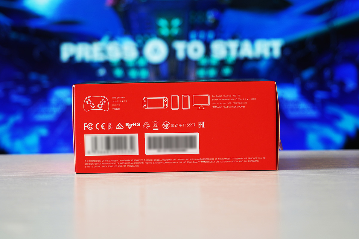 从外包装上可以看到GAMESIR T4mini支持6轴陀螺仪、内置非对称双震马达、半透明机身支持多彩灯光,600mAh电池及几乎全平台的支持。虽然侧面的包装盒只列出了switch、Android、iOS、PC平台,但在官方的网页也可以看到如MacOS、树莓派也都可以使用这款游戏手柄。