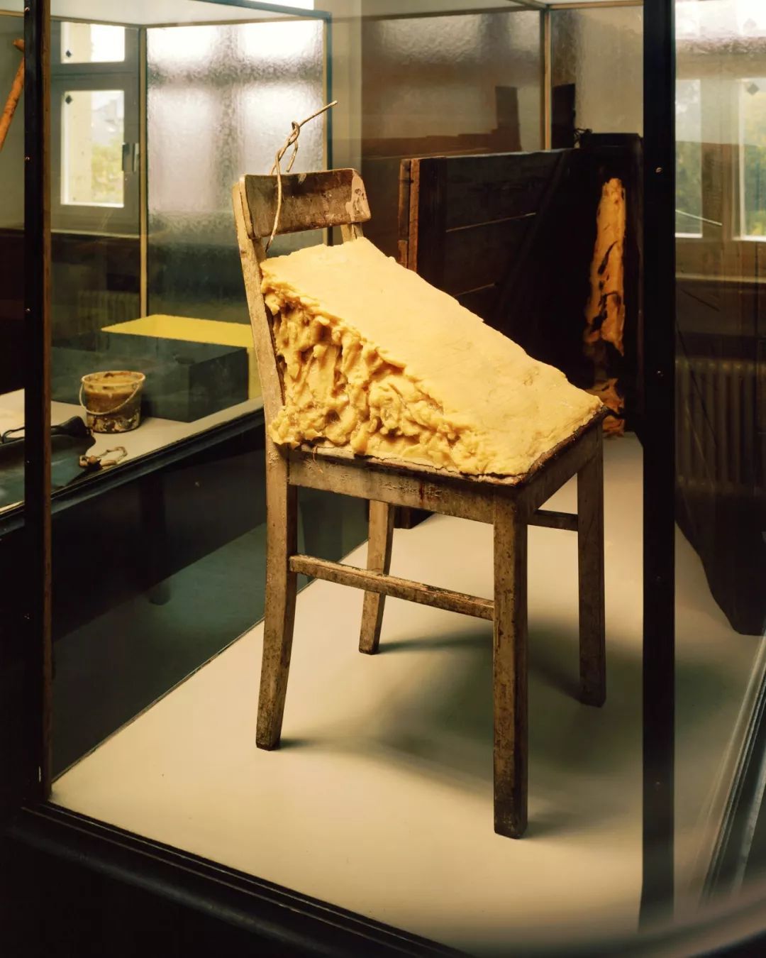 擅长处理垃圾、碎石和废品的博伊斯曾说:“雕塑是非固定的,也是非完成的。”丢弃还是拾取?时间性如何影响着我们创造的过程?椅子上的脂肪变渐渐被旧椅子的木材空隙所吸收,博伊斯尤其喜欢这件作品里德语“椅子”读音里的双关含义(stuhl或stool)。