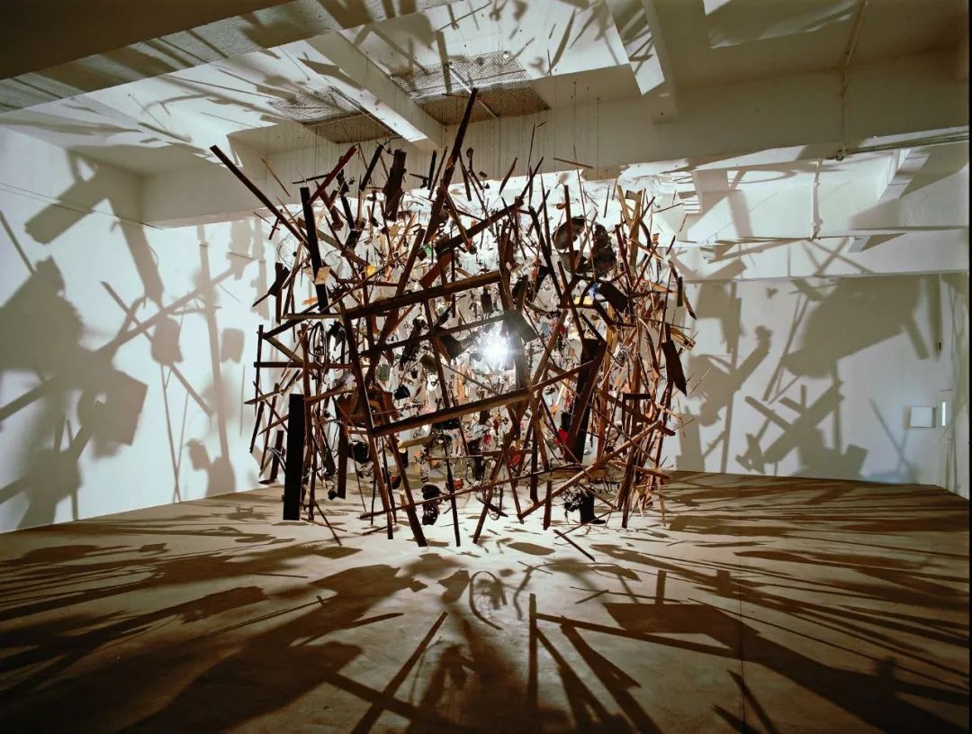 科妮莉亚·帕克那些惊人的装置作品总是涉及破坏、变形、善恶的时空混合与现成材料之间的世界,并将废旧材料的叙事特性发挥得淋漓尽致。在《冷暗物质:爆炸视角》中,一个花园棚屋在炸裂消亡、失去美好功能的瞬间被捕获。