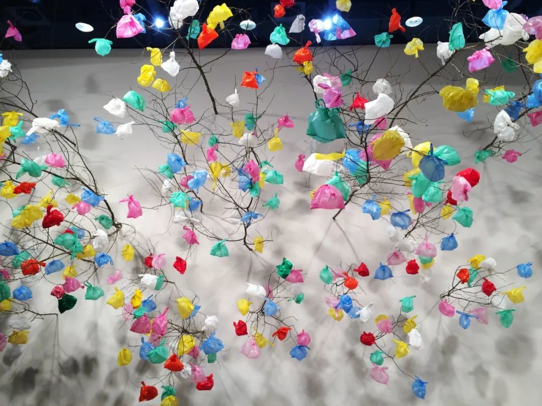 帕斯萨尔·马凡内·泰欧的《蜂巢》和《塑料树》将千万只迅速可能成为垃圾的彩色塑料袋回收品塑造成密集的自然仿生物,塑料袋已经成为全球化和消费主义日益增长的象征,同时也成为某种移动的、无家可归的象征,它们无可阻挡地变成人类世界中最重要的社会景观与生态。