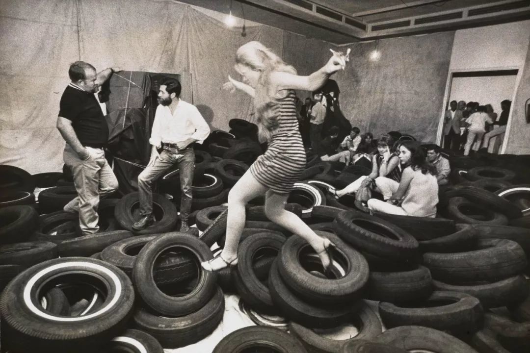 偶发艺术的创始人艾伦·卡普罗在自家的院子里堆满了从修车行里淘汰下来的废弃轮胎,将其搭建成一个由废弃物构成的游戏乐园,邀请朋友前来玩耍。
