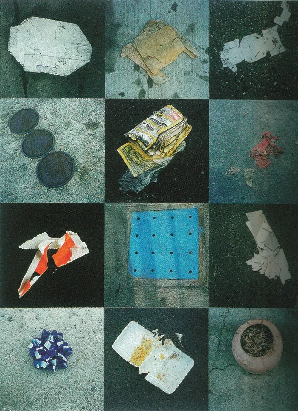 一张皱巴巴的纸、一个聚苯乙烯包泡塑料容器、艺术家工作室旁的布鲁克林—皇后高速公路下的维修路面,或是媒体上的无用图像,斯佩里奥斯将每一个平淡无奇的东西放置到个人的格子中。此时,路边的废弃物成为了一种个性化的、本地化的、亲密的观看视角。