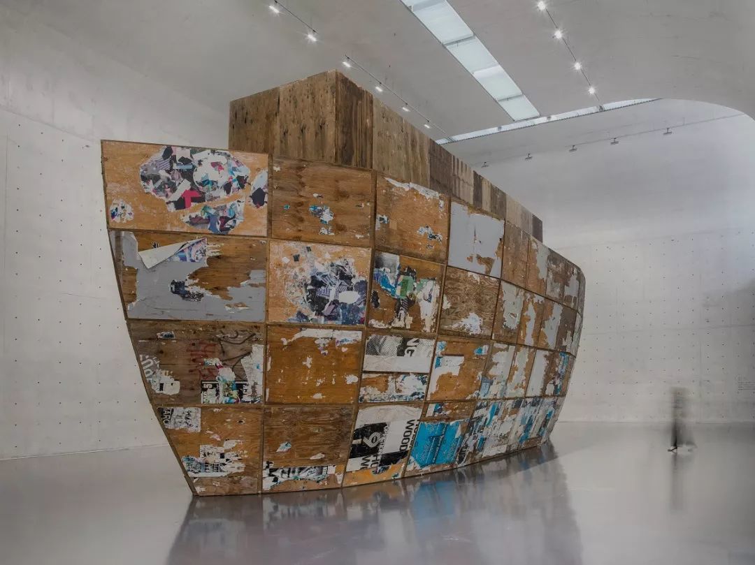 马克·布拉德福特将卡特里娜飓风残骸中的风化木板变为一艘同时承载着绝望与希望的诺亚方舟式装置《密特拉》,艺术家回忆当他拆开装满废弃木板的箱子时,依然能够闻到飓风海水的味道。他的绘画和综合材料作品充满了其独特的“社会抽象” 表现形式,其材料往往来自于散落在洛杉矶街道上的废弃物,如无用的传单、广告、金属部件、瓷砖或任何美国都市残骸。