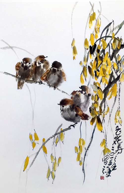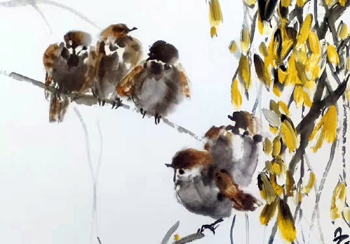这以小见大的审美是国画的特质,当玉花寿之王博士的国画《黄叶嘉宾》映入眼帘时,我竟随着作品的意境进入了无际的畅想。