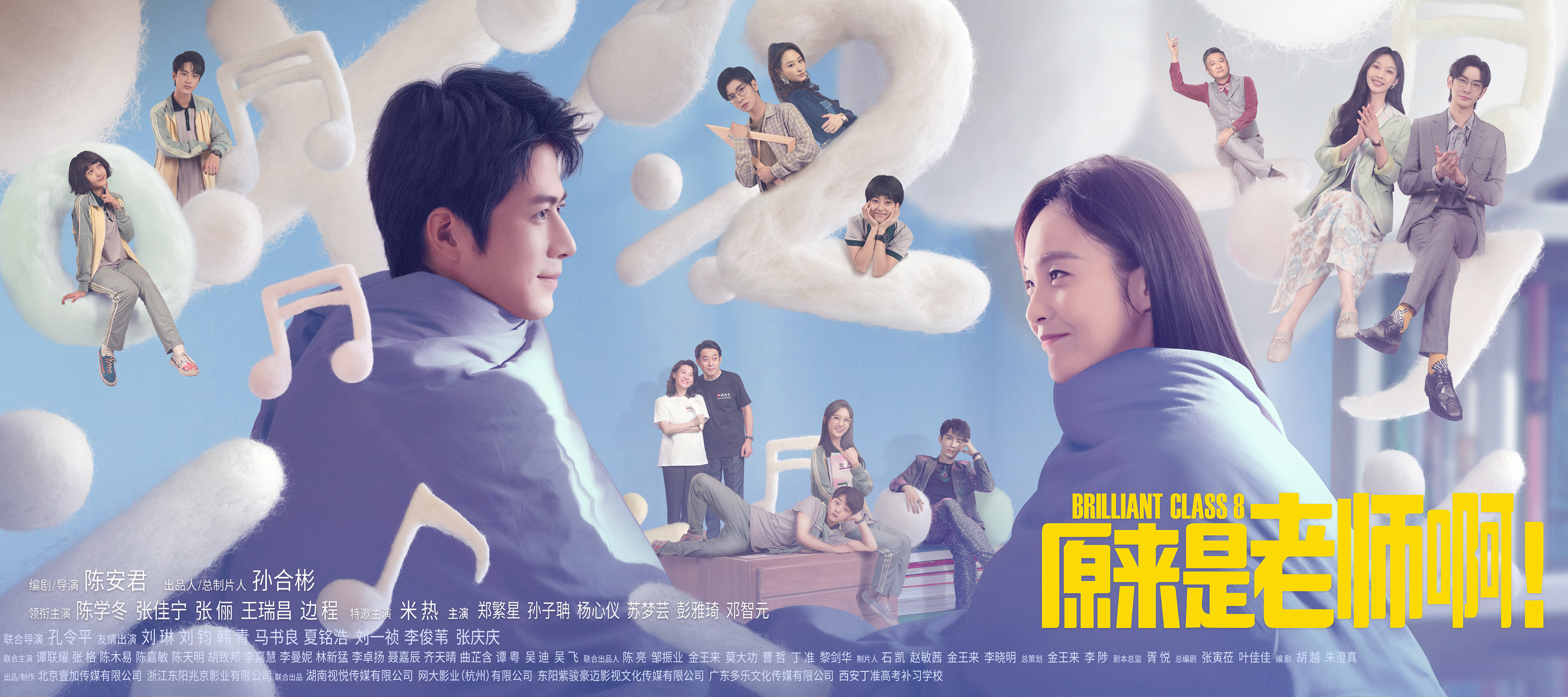 由北京壹加传媒有限公司出品、制作,孙合彬任出品人、总制片人,陈亮、邹振业、金王来、曹哲、丁准、黎剑华任联合出品人,陈安君任导演、编剧,孔令平任联合导演,陈学冬、张佳宁、张俪、王瑞昌、边程领衔主演,米热特邀主演,郑繁星、孙子聃、杨心仪、苏梦芸、彭雅琦、邓智元主演,刘琳、刘钧、韩青、马书良、夏铭浩、刘一祯友情出演的都市校园轻喜剧《原来是老师啊!》正式官宣阵容,官方同天释出首支“反向追爱”预告片和“甜上云间”全员海报。官宣物料中,活力充盈动感十足的人物形象跃然眼前,剧集清爽幽默的气息扑面而来。