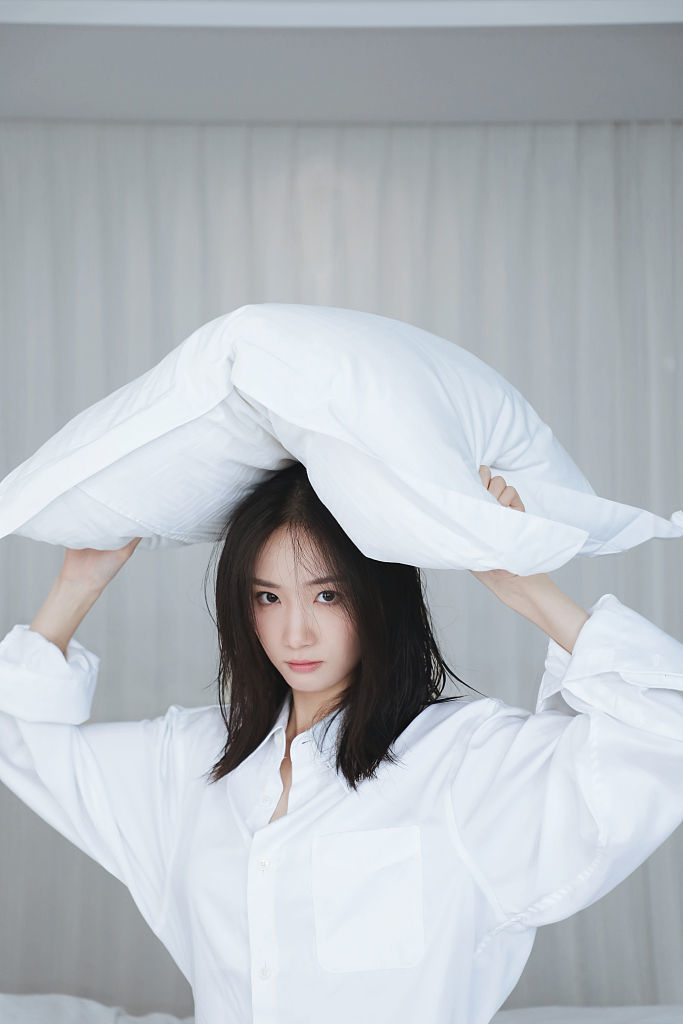 张垚酒店写真清新文艺 捧书本托腮浅笑氛围感拉满