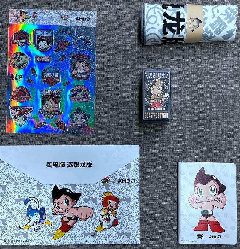 礼包包含阿童木盲盒1个、笔记本1本、速干巾1条、镭射贴纸1幅、PV材质文件夹1个,制作精致内容丰富。都是围绕80、90后的经典回忆铁臂阿童木的,铁臂阿童木拥有十万马力动力强劲,正如AMD的锐龙5000系列处理器一样“锐”不可挡。