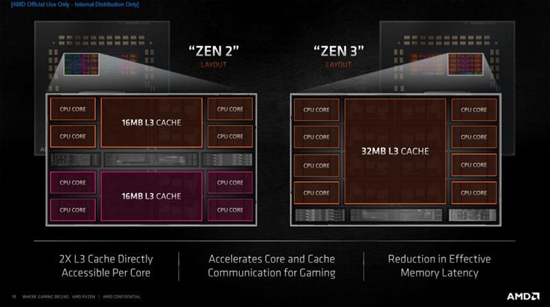 AMD在最新的Zen3架构上大幅改进了单核性能,提升了缓存性能,并降低功耗提升能效比,最终实现了19%的IPC性能提升,再加上频率的改进,单核性能一下子就提升了26%,成为目前的单核王者。彻底扭转了消费者Intel单核强悍AMD多核默秒全的固有认识。