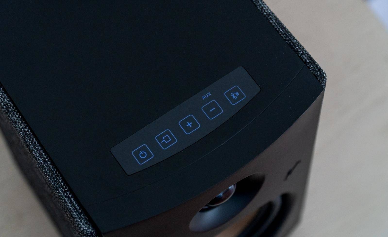 黑色哑光前面板,音箱箱体侧面为流线型弧面设计,侧后方以特制的灰白相间无缝编织网布进行包裹,OS-10透出简约时尚的气质,的确十分耐看。在耐看的同时,OS-10还提供了触手可及的功能输出,让使用体验更优秀。