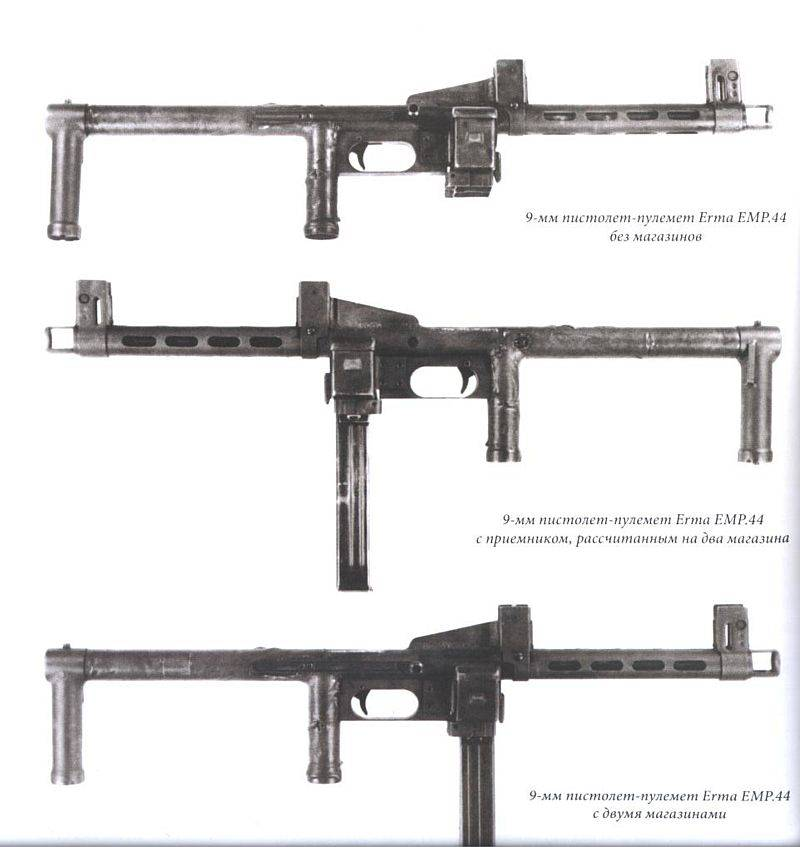 这是一款由一个叫 Erfurter Maschinenfabrik(简称Erma,艾尔玛)的公司设计的,EMP冲锋枪的E就是Erma的首字母,MP就是Maschinen pistole,冲锋枪的意思,44代表年份,1944年定型。