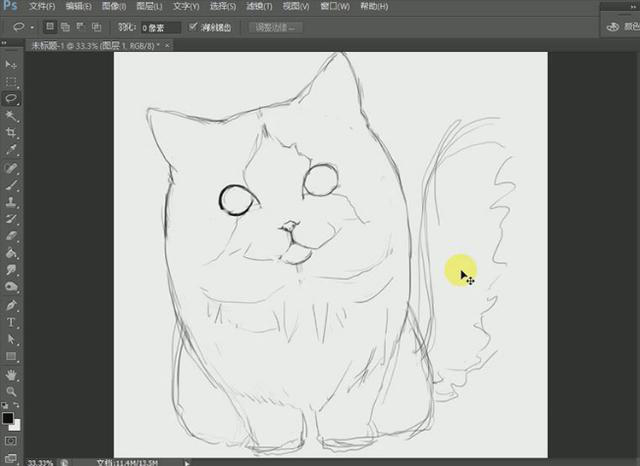 一、线稿绘制:首先我们在软件中新建画布、图层。用画笔工具绘制出线稿。