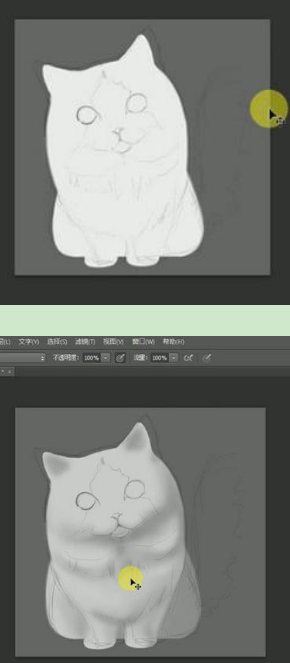 二、铺色:新建图层,先给背景整体铺一个灰色,注意把握轮廓。继续新建图层,创建剪切蒙版,接着将颜色调成灰色,绘制明暗关系。