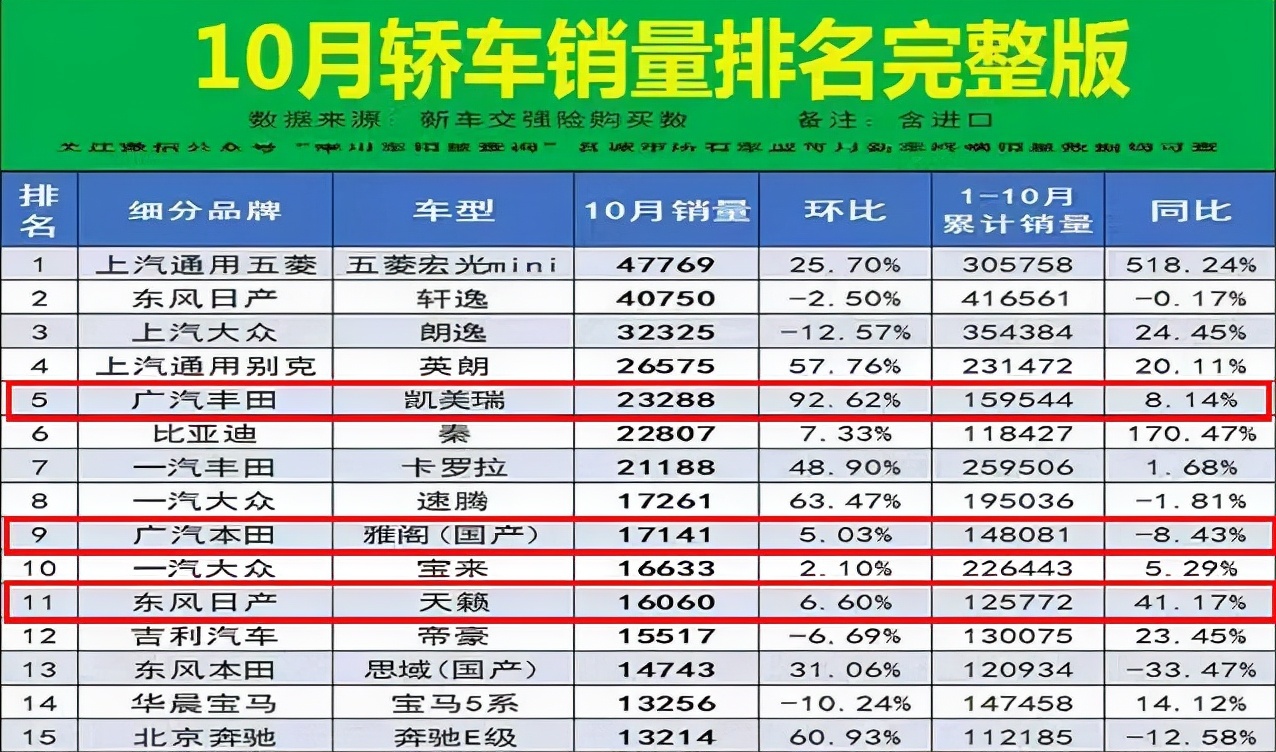 而从最近几个月以及今年前十个月的销量来看,今年的销量冠军应该会从凯美瑞和雅阁之间诞生。