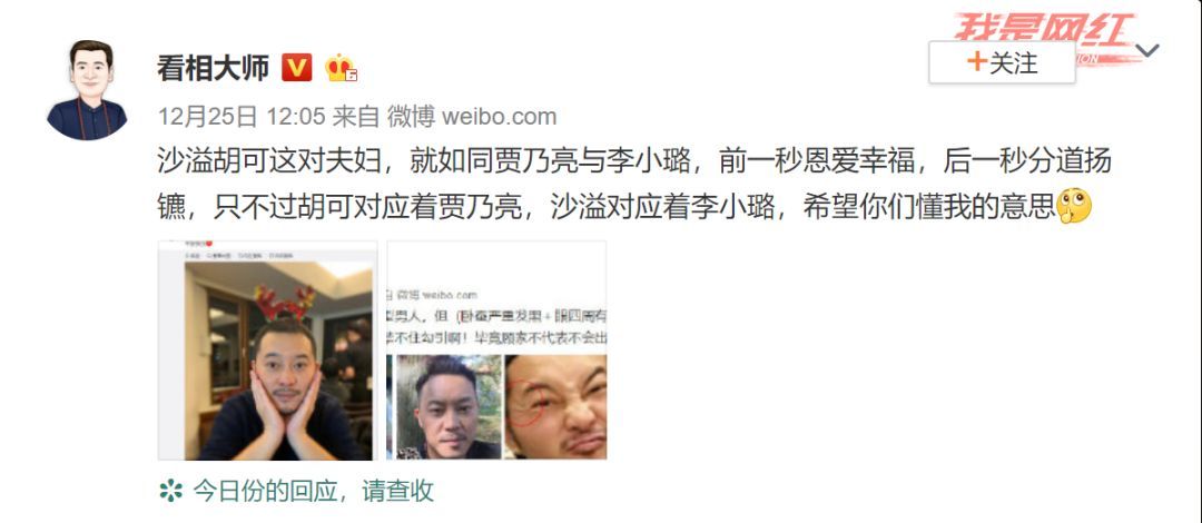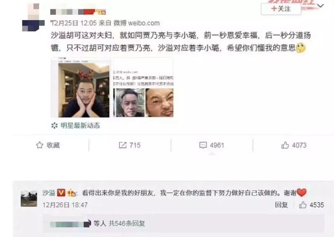 早在2018年,微博上就有博主预测沙溢和胡可将离婚,言语之间暗示沙溢出轨。