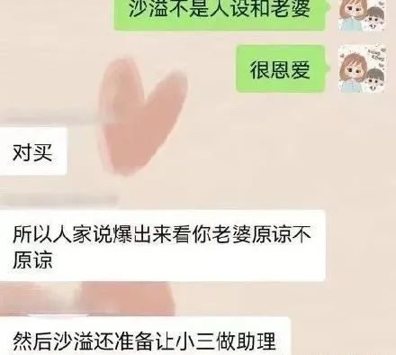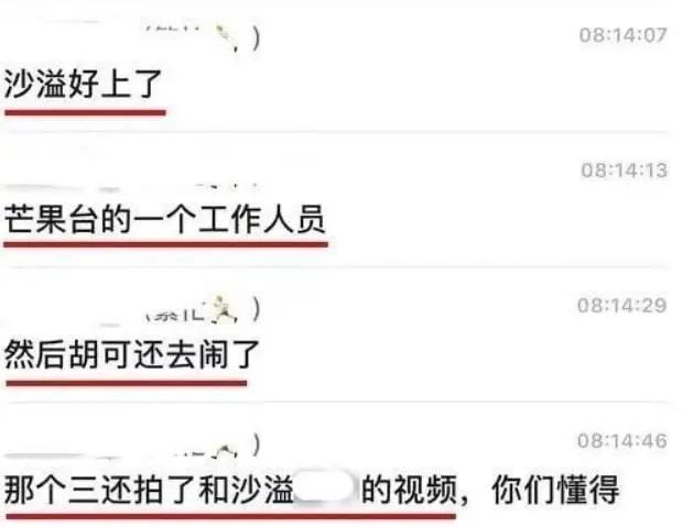 事情的起因是,网络上流传着一些聊天记录的截图,称沙溢与湖南台的一位工作人员有染,小三拍下了视频,胡可还大闹了一场。