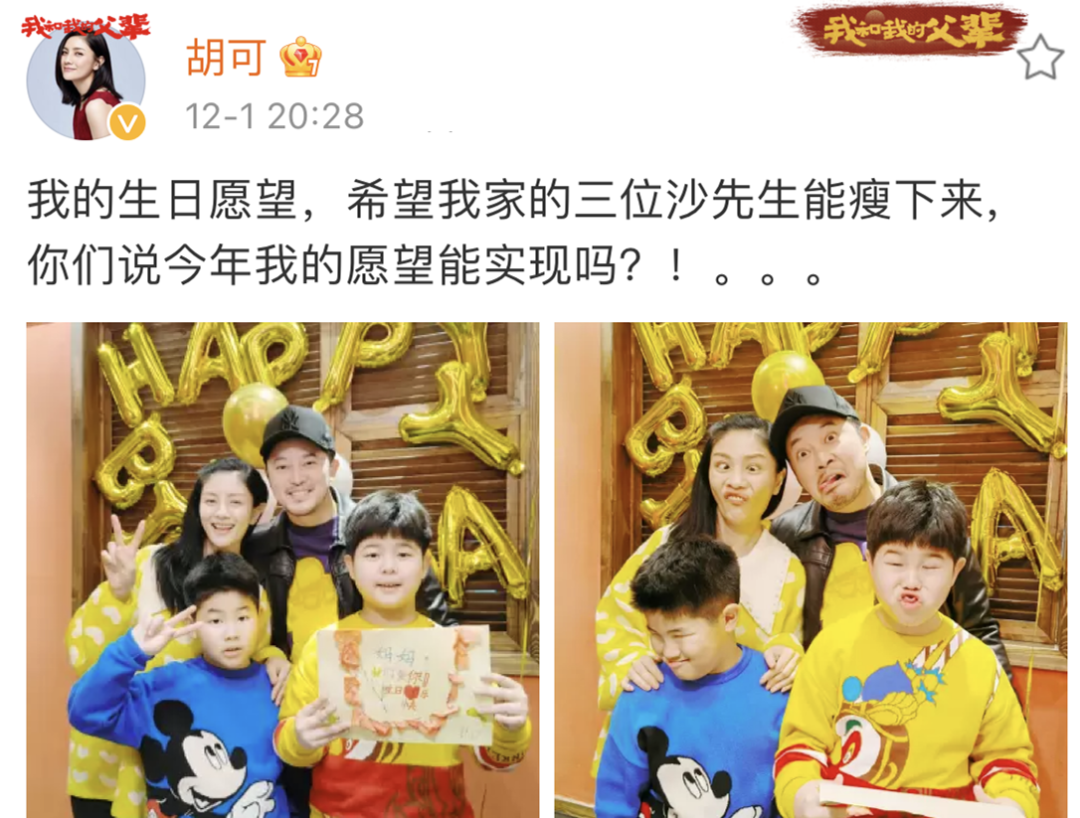 而胡可也不理出轨传闻,只是借着生日的契机在社交平台晒出一家四口合影,并许愿让家里三位男人都减减肥。