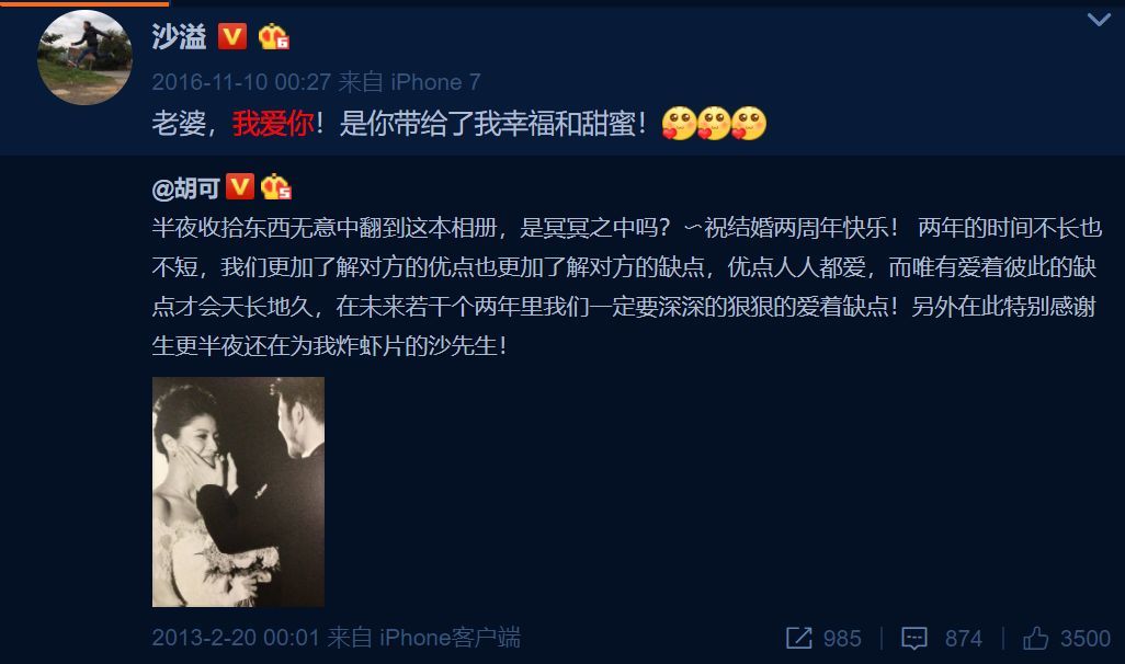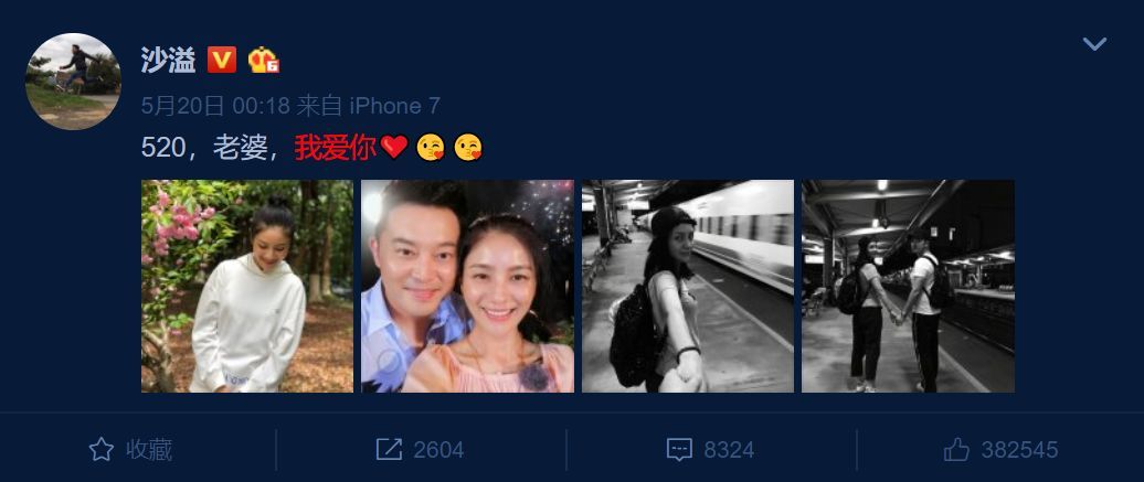 微博公开表白再日常不过,沙溢会常常对老婆说“我爱你”,甚至偶尔撒娇。