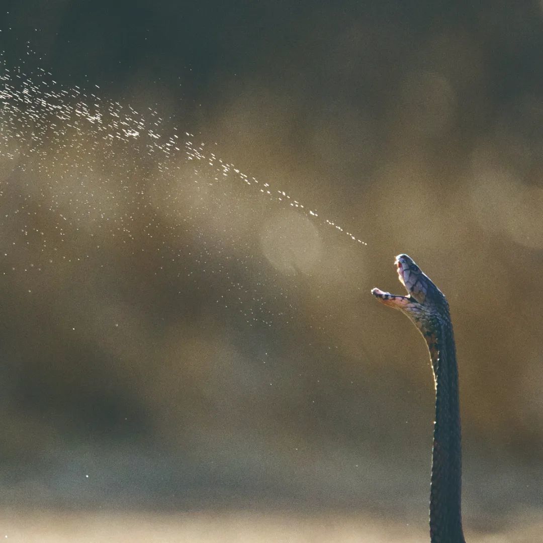当眼镜蛇感受到危险时,会通过毒牙上的小孔喷出毒液,毒液射程能达2米。如果人的眼睛不幸被毒液射中,有可能会失明。