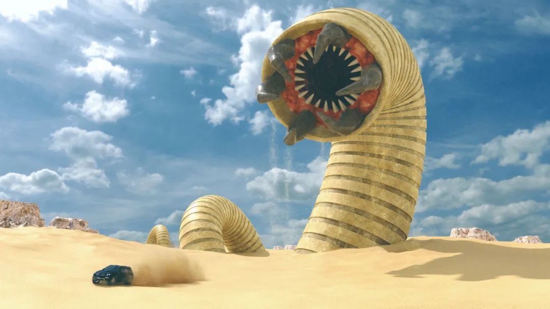 目击者称,死亡之虫一年中只有6、7月份会钻出来活动,其余时间都会钻进沙丘下过着冬眠般的生活;它体长约有0.5~1. 5米,身体呈红色环节状、有暗斑;没有明显的头部,两端有时会探出犄角,当它张开血盆大口的时候,会露出满嘴的尖牙。