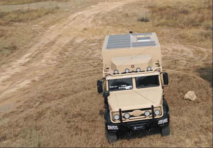 生活舱顶部还安装了9块100W的太阳能电池板,车载的美国品牌太阳能充电管理系统可以让“流浪者”在有光的时候变身行走的充电宝。把光能转换为太阳能充电到车载840AH,24V磷酸铁锂电池组中,能够给全车电器设备供电,摆脱充电桩的束缚。