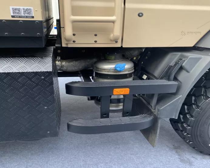 人员安排好了,马儿不能不吃草啊,怎么着也要把咱们这匹“千里马”安排妥当了。车身左侧原厂300L全铝大油箱,带冬季油路加热,防止因温度过低造成的油路凝结车辆无法启动。这么大的油箱怎么着也能闯荡千里无人区不在话下。