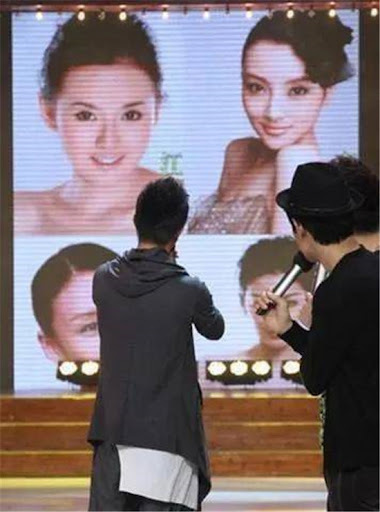 大屏幕上四个女孩子,李小璐是他以前的绯闻对象,另一位脸不熟的女孩,观众不认识,看旁边写着的名字——江铠同。